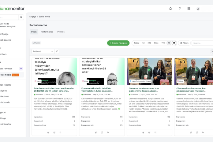 Sosiaalisen median hallinta on tehokas osa Lianan viestinnän kokonaisratkaisuja. Integroimalla some-hallinnan, tiedottamisen ja seurannan saat kokonaisvaltaisen näkymän viestintääsi. Ei enää siiloutumista, kun kaikki työkalut ja data ovat samassa, tutussa paikassa.