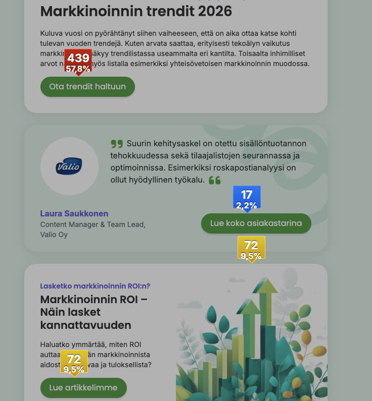 Sisällön A/B-testauksessa voit testata esimerkiksi: